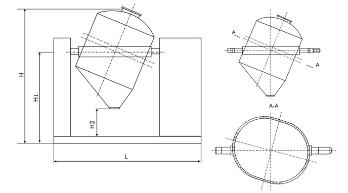 the barrel body of the eccentric center of gravity, eccentric, upper and lower three eccentric principle and six to the asymmetric design: upper and lower angle of volumetric asymmetry, left and right angle of volumetric asymmetry, before and after the point of volumetric asymmetry. According to the design principle of different volume generated by single multidirectional staggered motion, in order to achieve the best effect of mixing materials.